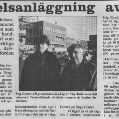 Marken Stig hade tänkt att bebygga låg helt avlägset från bebyggelse och hans ide blev starkt kritiserad av andra. När Stig ville köpa marken tvekade kommunen, de ville ha detaljerade planer på anläggningen eftersom kommunen också hade planer att exploatera området mellan motorvägen E6 och älven. Hans center invigdes med pompa och ståt 1968 och drog till sig flera företag till den tidigare obebyggda åkermarken. Anläggningen innehåll då bank, mataffär, restaurang, motell, bowling, verkstad och gummiverkstad.